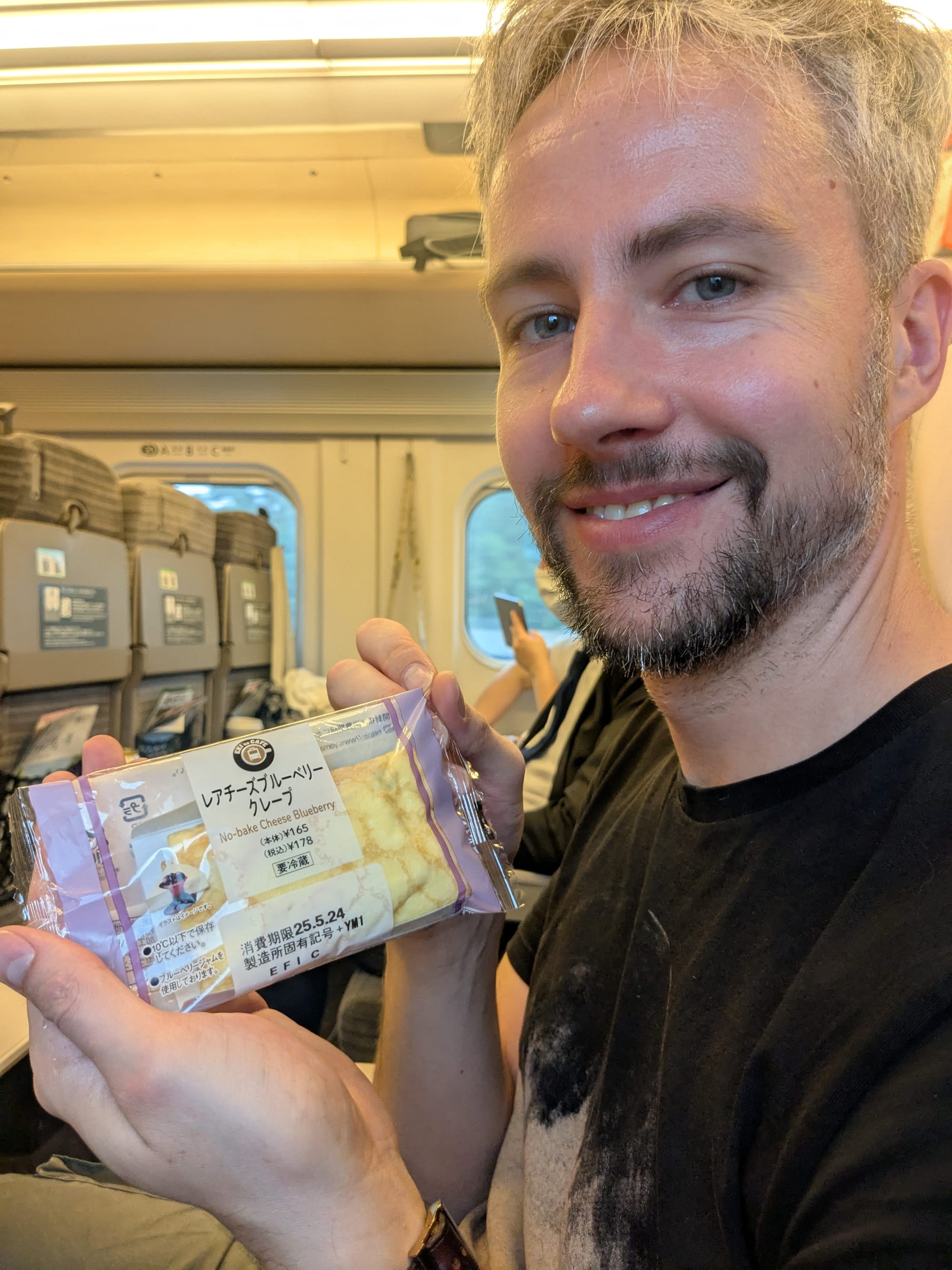 Gelukkig was het op Tokyo central, waar ze ontzettend goede daifuku hebben dus ik heb wel weer op een bal kunnen knagen. Top. En heeft Geert natuurlijk weer een dubieuze snack gehaald. Alsof hij aan mij niet genoeg heeft.