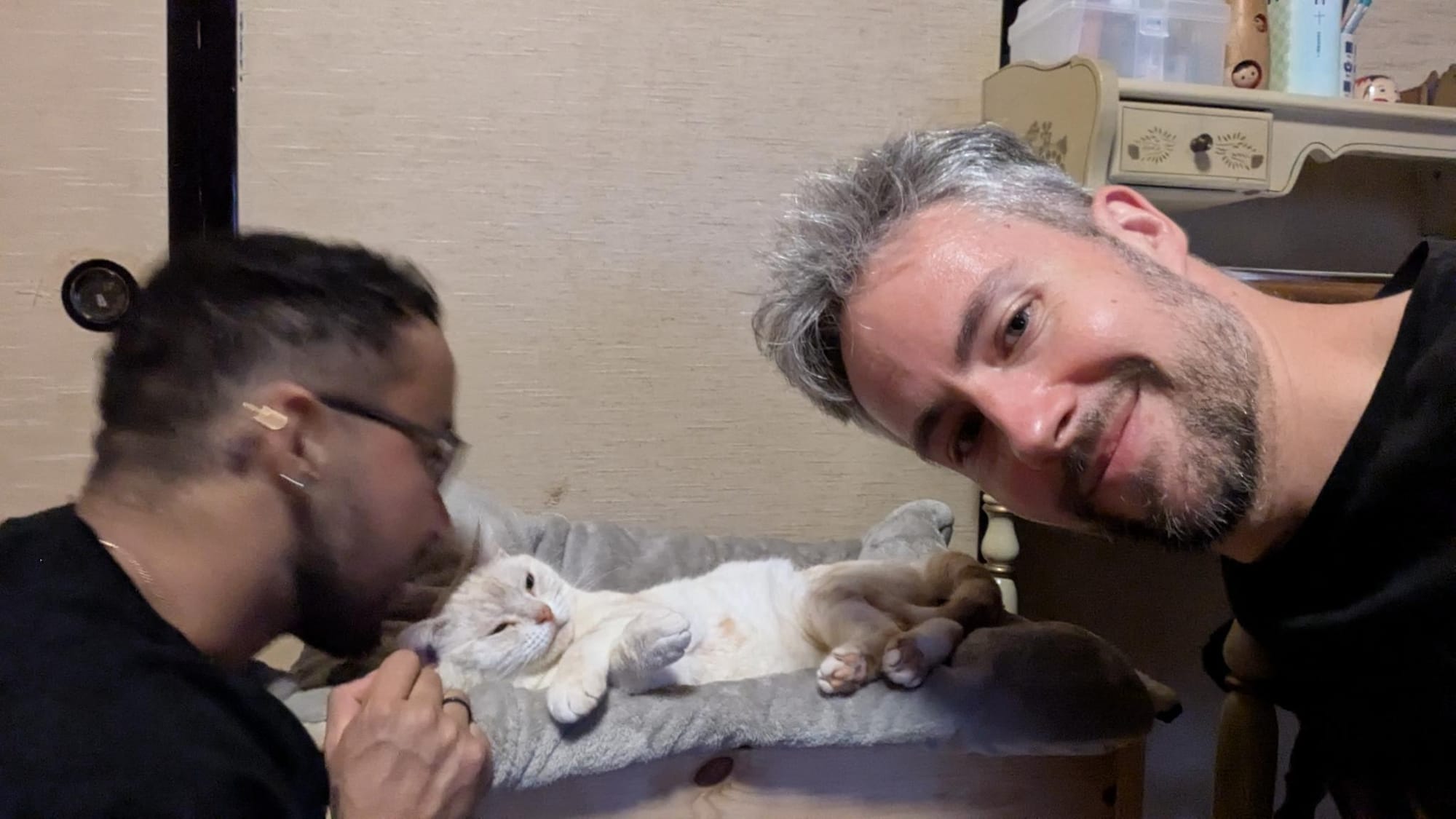 Uiteindelijk waren we ontzettend laat in Ishinomaki, waar we verblijven in een traditioneel Japans huis. Met kat natuurlijk. Een stressvolle dag, maar het gevoel van een zachte spinnende kat tegen je aan helpt altijd. Met mensen ben ik niet zo goed en die moeten met hun poten van me af blijven, maar kattenpootjes en -kusjes mogen altijd. Hier konden we echt even ontspannen.