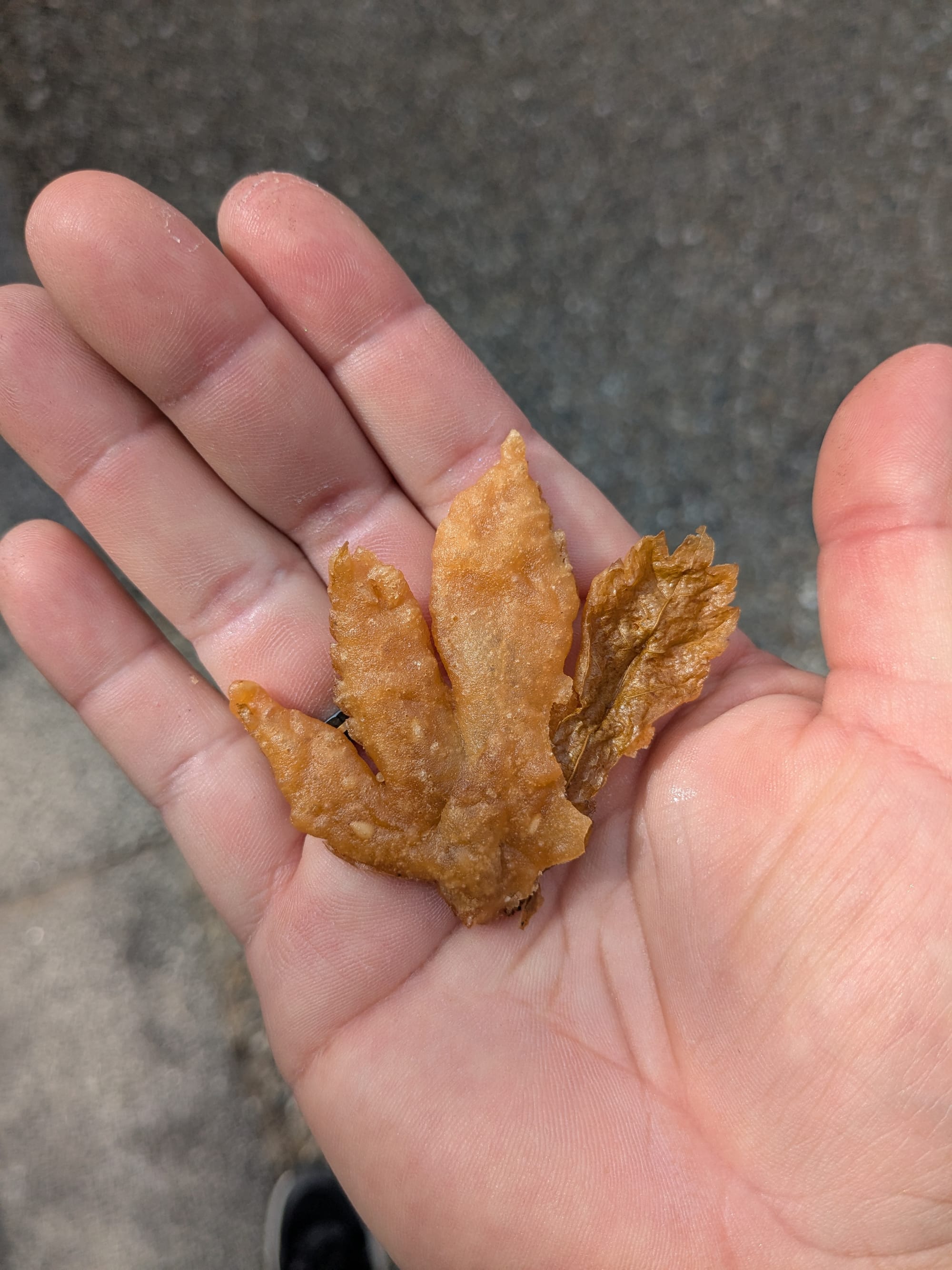In de buurt van het Cup Noodle Museum ligt Minoh Park, bekend om haar met bomen bezaaide heuvels en natuurlijk Minoh Falls. De reden om de afgelopen twee dagen rustig aan te doen, want dit moest en zou ik zien. Een Hankyu ritje later en een doosje vol Japanse gebakjes begonnen we aan de wandeling naar boven, waar we gelijk geconfronteerd werden met de lokale delicatesse: tempura maple leaves. Hoe dit werkt weet ik niet, maar blijkbaar zijn gefrituurde bladeren superlekker. De geur liet ons gelijk twee zakjes kopen van het oude echtpaar dat ze stond te maken. When in Rome...