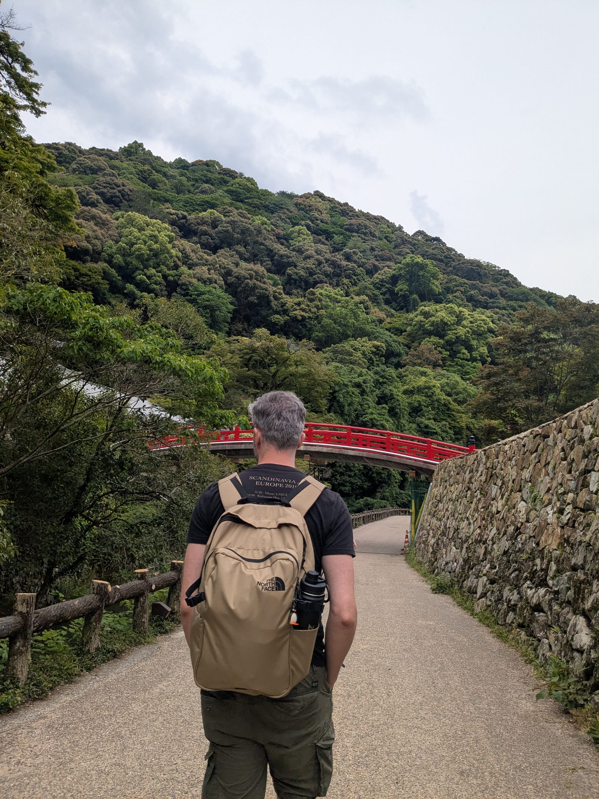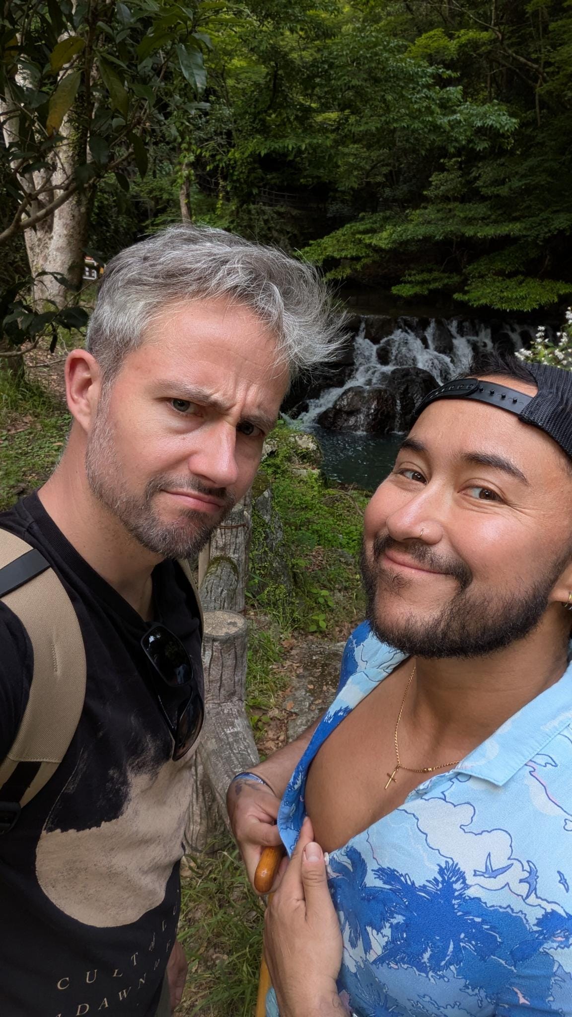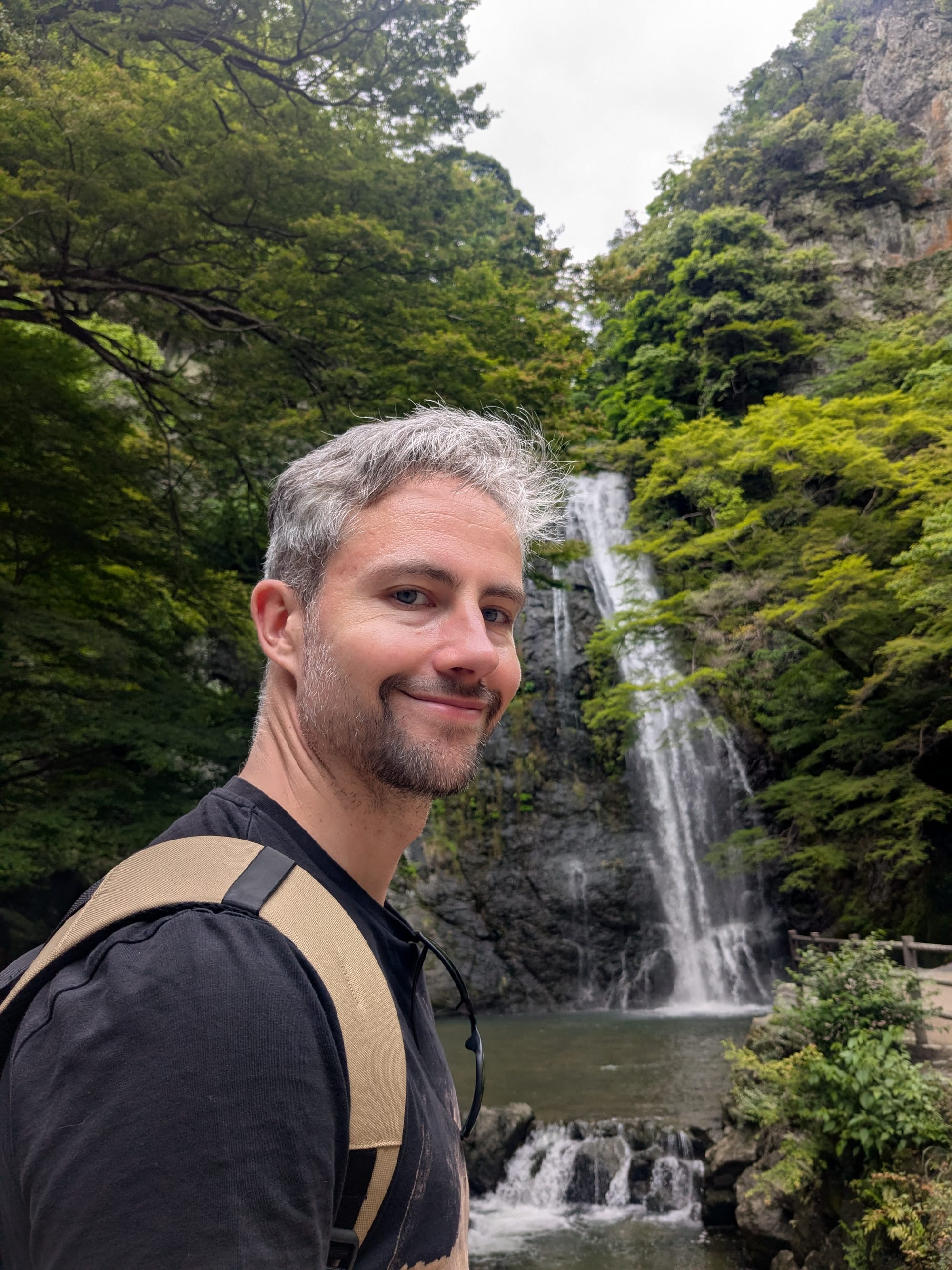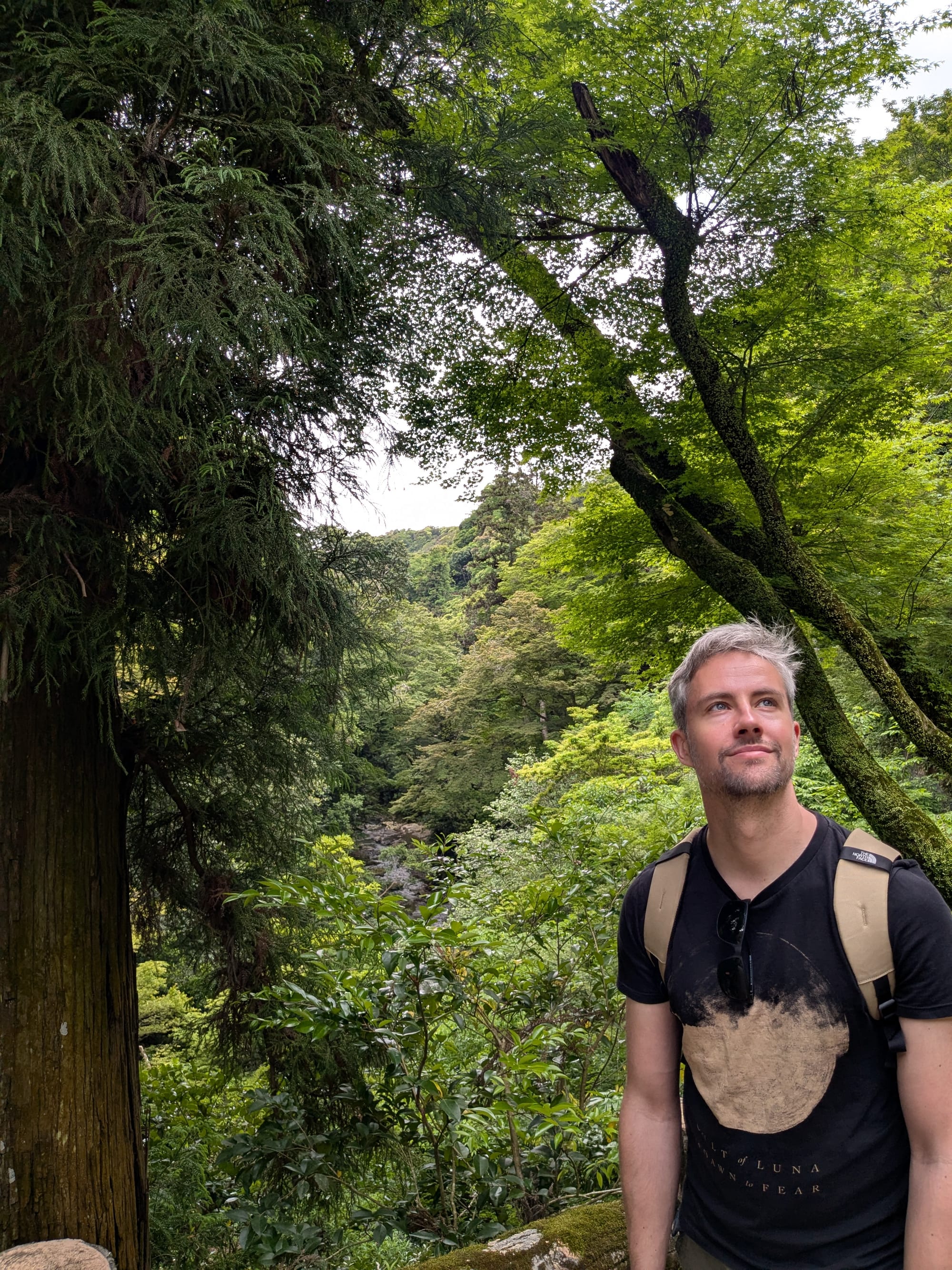 Nu had ik dit al een beetje de weg naar boven, maar toen ik voor het eerst oog in oog met de waterval stond kwam die toch even binnen. Heel bijzonder om dat zo mee te maken en ontzettend fijn om dan ook écht aanwezig te kunnen zijn en alles goed in me te kunnen opnemen. Omdat we er aan het eind van de middag waren was het ook niet al te druk, waardoor we nog even op een bankje konden zitten en konden genieten van de natuur om ons heen. En Geert van het bijna breken van zijn tanden op een pruimenpit. Soms is het handig om verpakkingen te vertalen, bijvoorbeeld wanneer er staat "Kijk uit, bevat pruimenpit". Gelukkig kon Geert hem ook weer uitkotsen. Was die kipsashimi toch nog ergens goed voor.