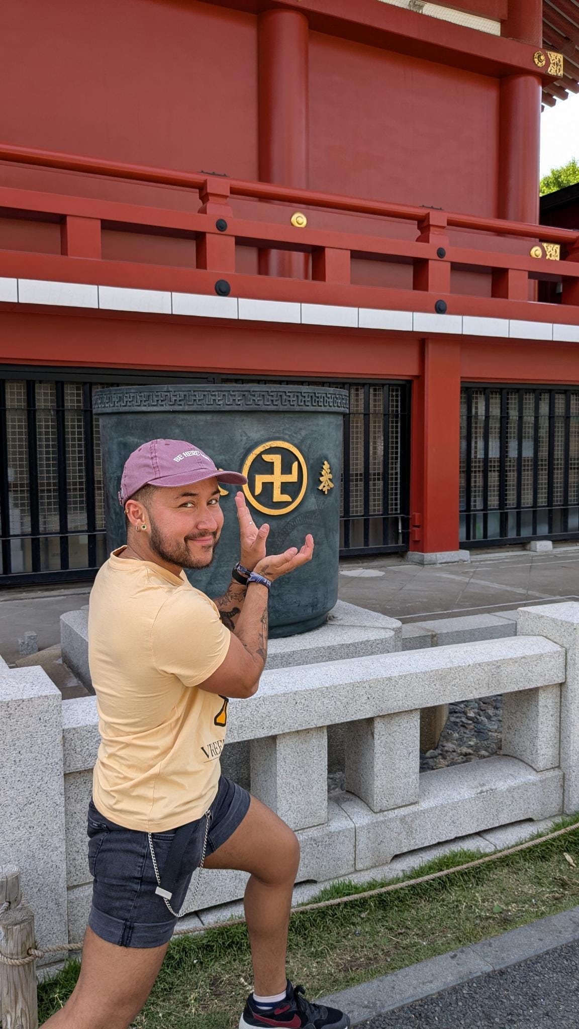 Los van alle vriendschapsmolentjes was het een imposante tempel, en zeker de pagodes waren ook erg mooi. Het was een prachtige zonnige dag, en gezien Jan en ik een gedeelde passie hadden voor het ironische gebruik van de symboliek die hier overdadig aanwezig was , voelde mijn ziel toch weer een beetje geheeld. Misschien ontzettend kinderachtig, maar dit is nou eenmaal de humor die we hadden.
