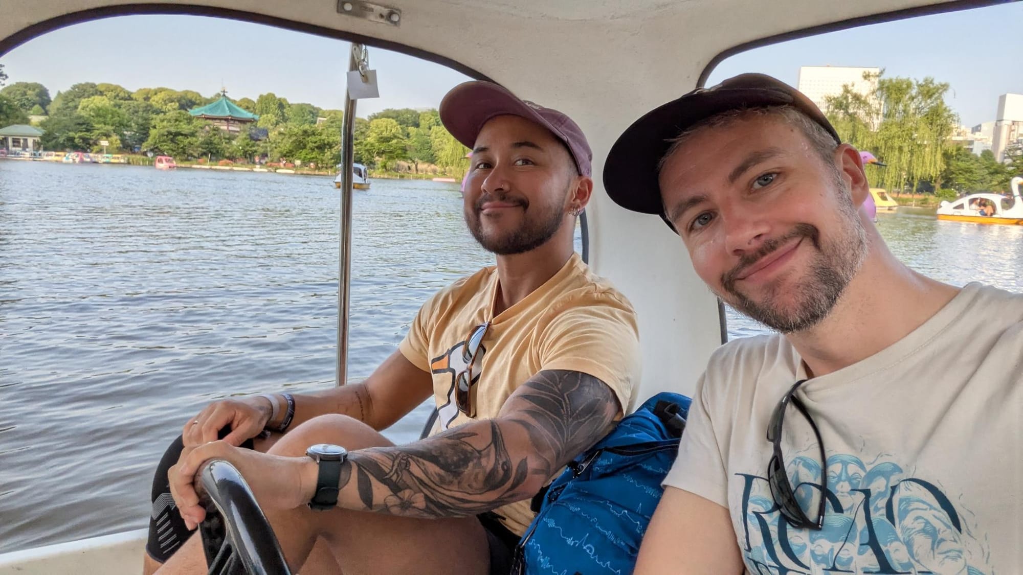Het was duidelijk dat we de beste tempels hadden gehad en het niet beter kon dan dat. Gelukkig maakten onze hersencellen contact en hadden we een goed idee: meer bal eten en dan door naar Ueno Park om met een bootje op het water te dobberen en nog meer bal te eten. Hier hebben we nog vreemde vogels gespot, een schildpad en zowaar een slang. En een hele hoop koi karpers.