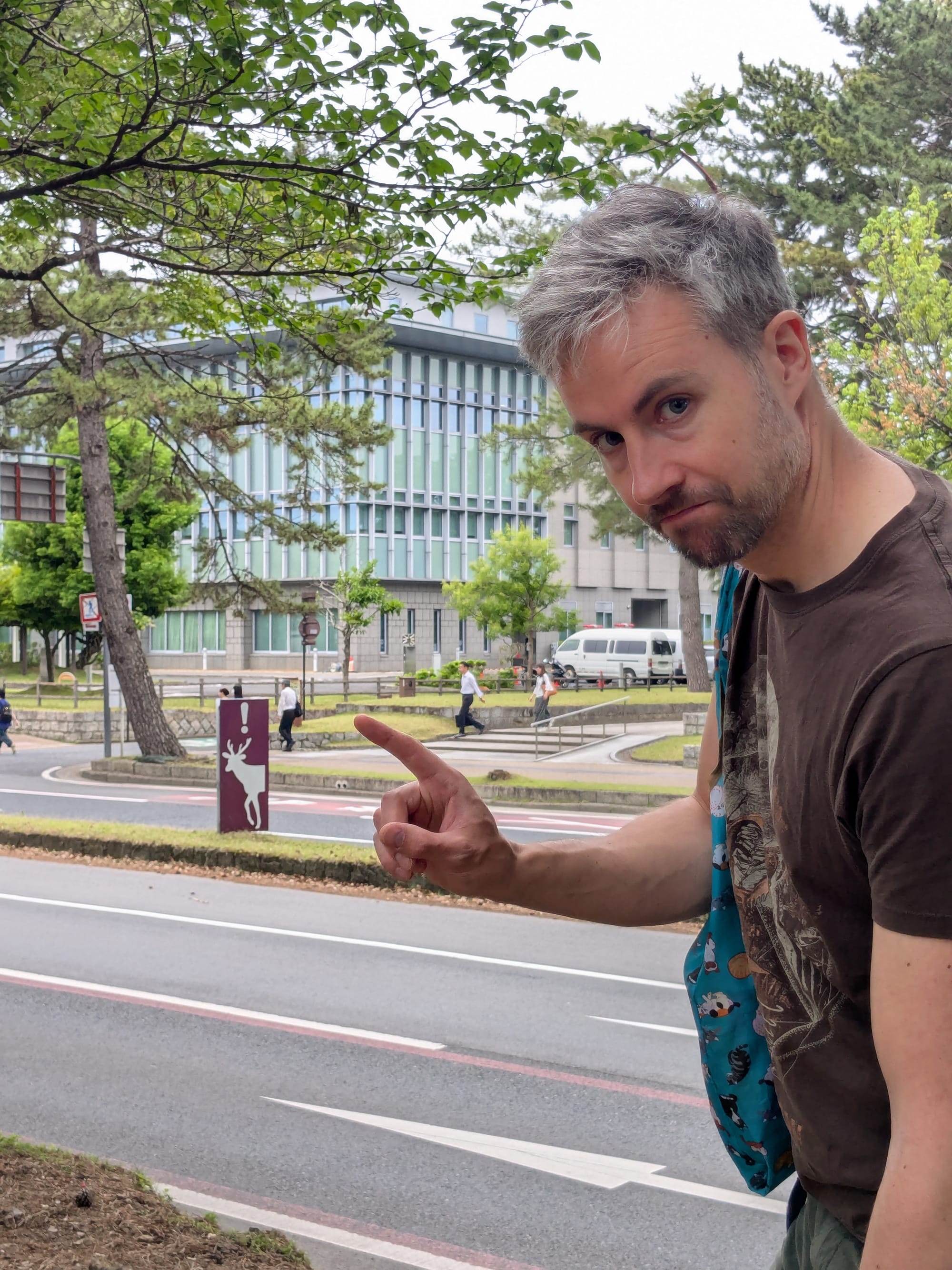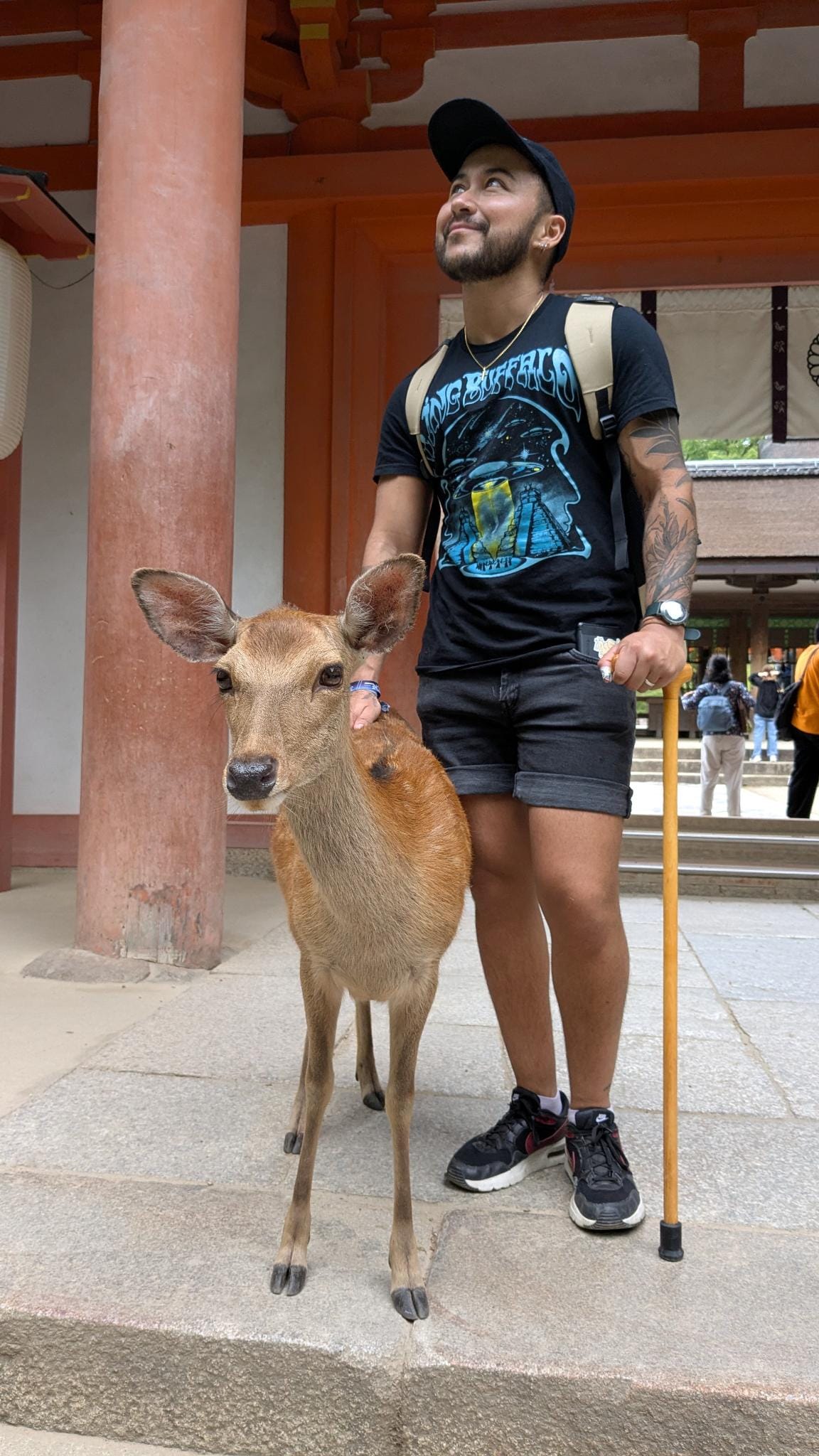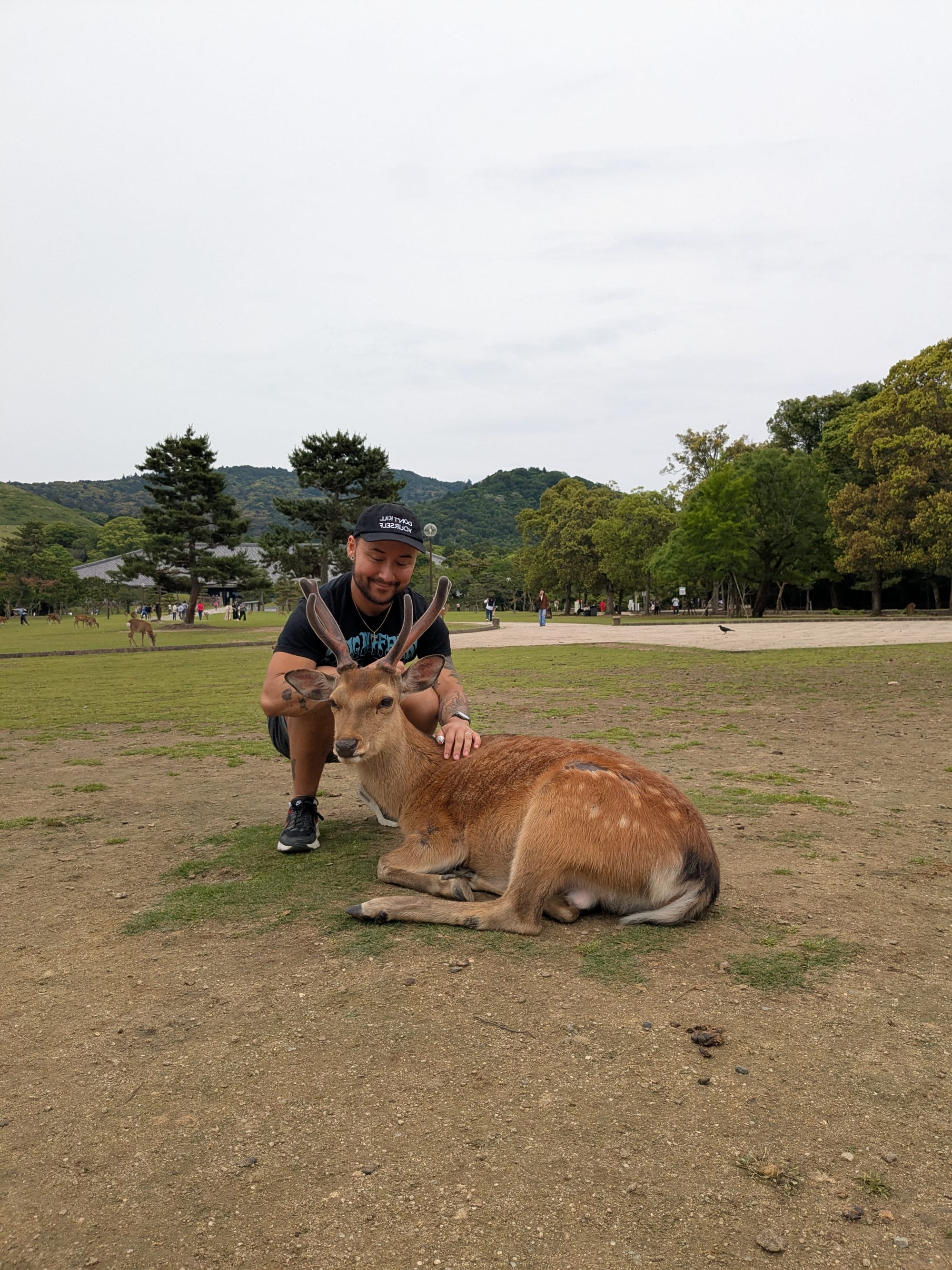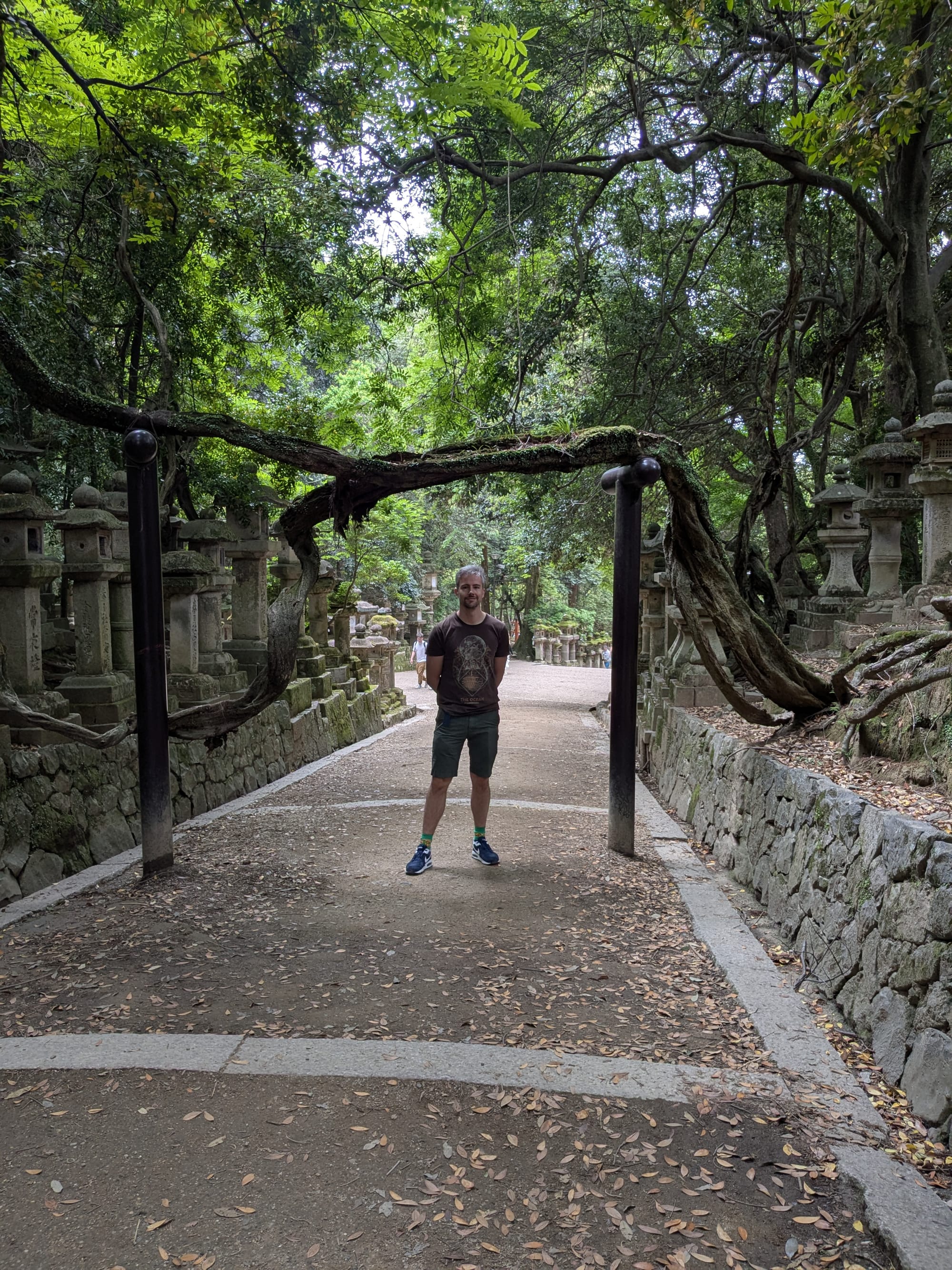 Een ontzettend populaire locatie en daarmee geheid druk. Buiten kan ik dat opzich wel hebben, maar gezien het een week sinds mijn laatste dosis was, ging ik vandaag voor een microdose (ik zou dit weer puur hypothetisch kunnen houden, maar wie hou ik voor de gek?) en Geert deed vrolijk met mij mee. Druk was het zeker, met name rondom het station aan het begin van het park. Al begon het wel gelijk goed: Geert spotte iemand met een Blood Incantation shirt. Die moest ik natuurlijk even aanspreken, en zo had ik een leuk gesprek met deze Florida Man over muziek en de deathcore scene aldaar. Onze wegen scheidden toen we even bij een tempel wilden kijken, maar het was er zo druk en de pagode was verlegen, dus we zijn gauw gevlucht. Wel bijzonder om herten, die wij toch als redelijk schichtig kennen, zo te zien chillen tussen alle mensen, klaar om gevoerd te worden met koekjes en liefde. Goals.