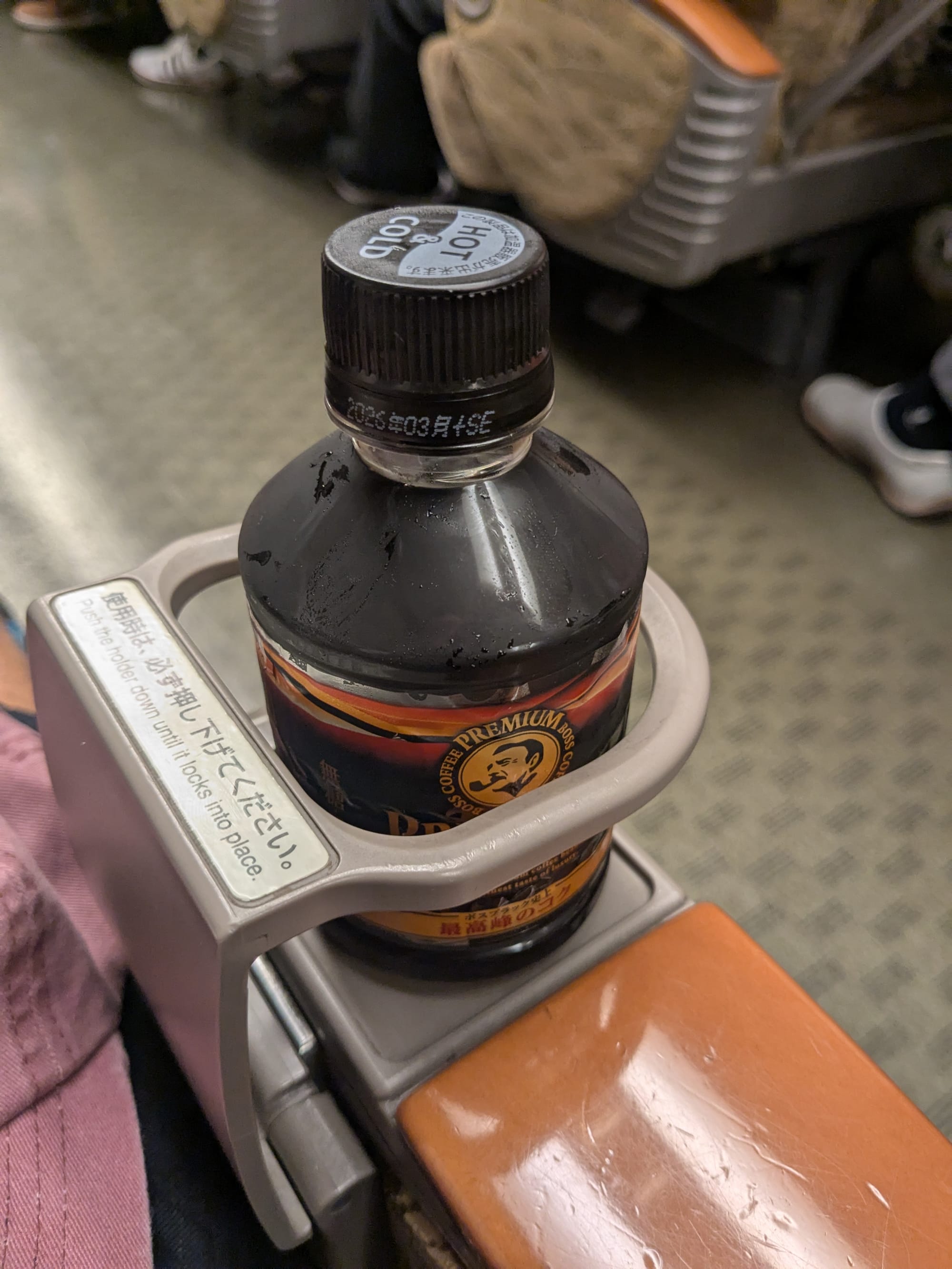Toen we gister de trein wilden boeken, bleek het meeste al vol te zitten. Oeps. Nu kan ik best 3 uur zonder Geert, maar 3 uur naast een vreemde moeten zitten geef toch stress blijkbaar. Gelukkig had ik de keuze om naast een vrouw te kunnen zitten. Ah, de ironie: hormonen nemen om mannelijker te worden, maar tegelijkertijd door je PTSS een diepgewortelde angst jegens het manvolk hebben. Een behoorlijk onpraktische angst, als naast of tegenover een man zitten je al zoveel stress geeft dat je niet kan slapen. Gelukkig verkoopt de shinkansen my beloved koffie. Wat moet ik zonder hem?