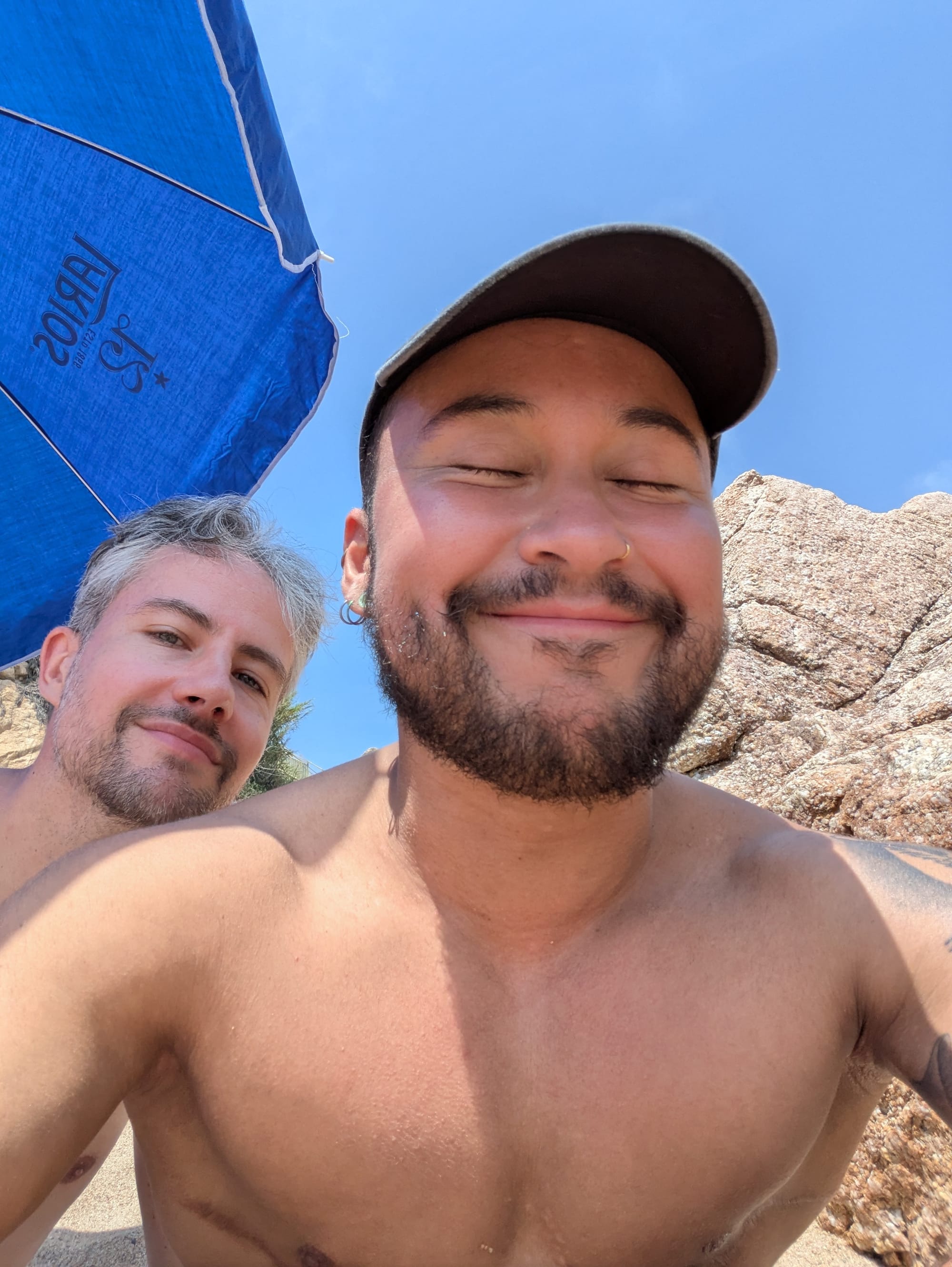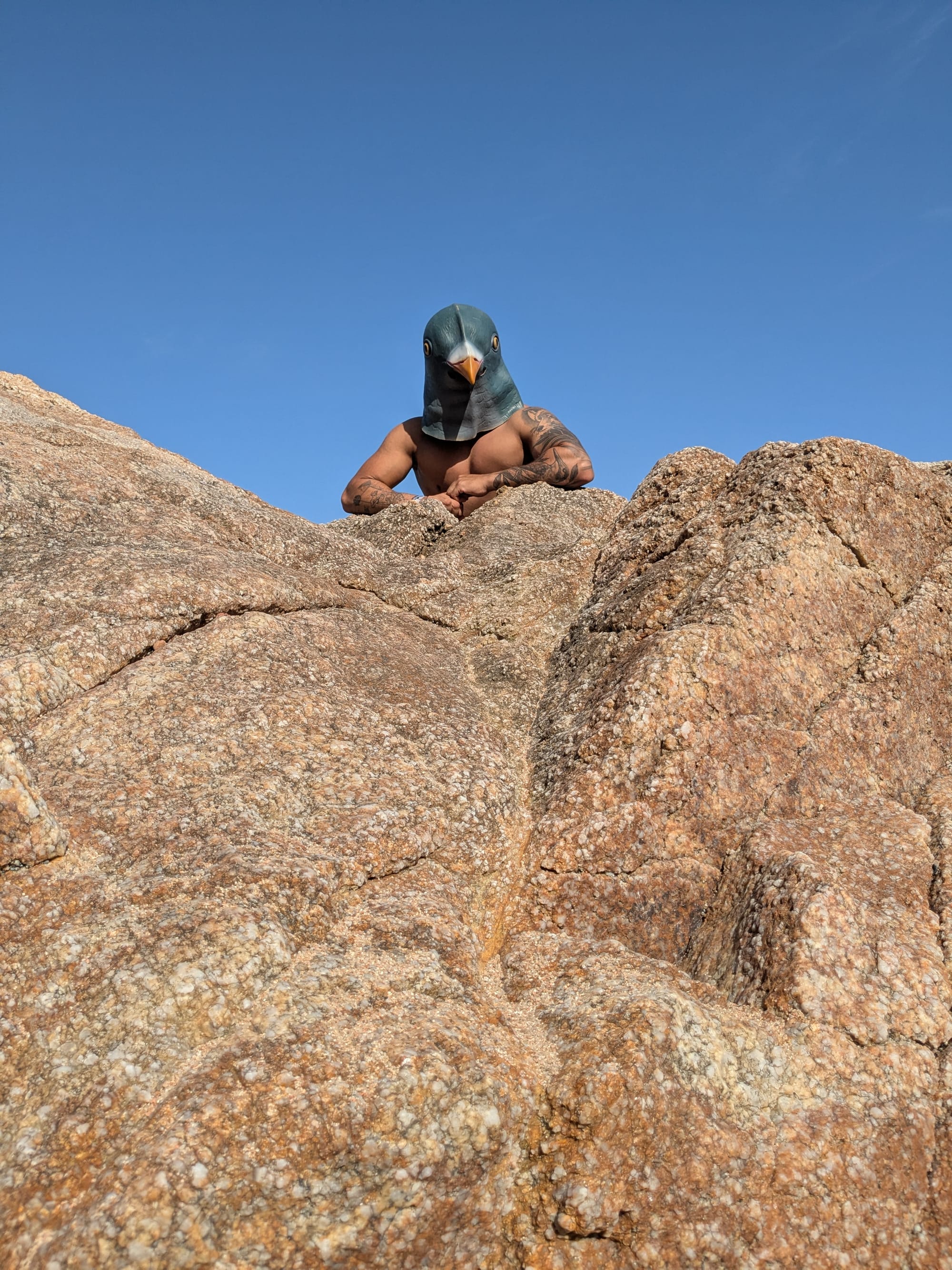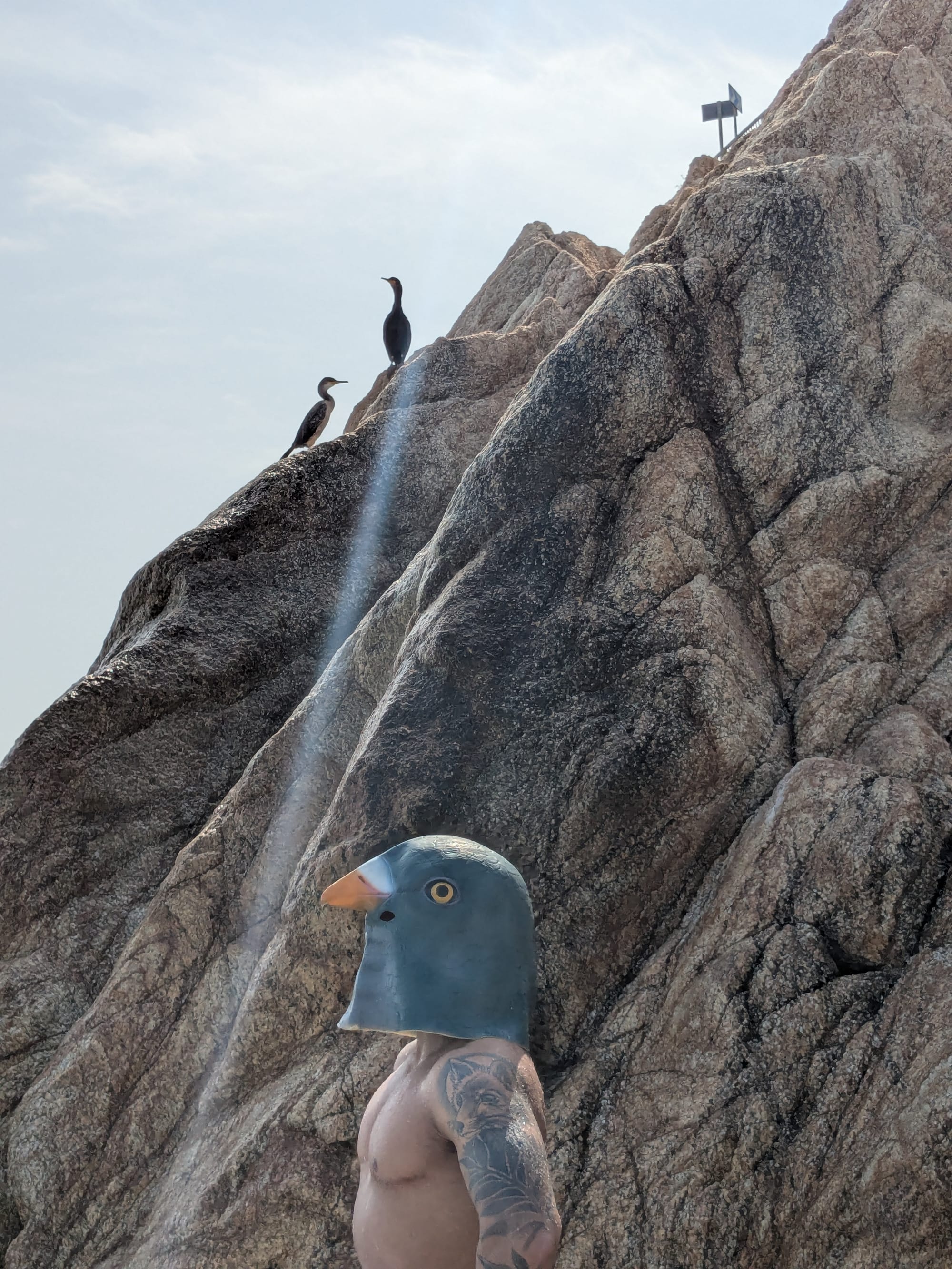 Hoewel dit de allerleukste dagen zijn die we samen hebben, is plezier nog steeds niet de reden dat ik het neem. Soms moet je dingen gewoon uit elkaar halen, dacht ik altijd, maar dat heeft geen nut als je het toch weer op dezelfde manier in elkaar zet. Als je geen therapie hebt om je anders te laten denken en kijken, dan maar zo. "Helaas" viel er genoeg te kijken op het strand: we hebben bizarre dingen gezien. Van een vrouw die de heftigste yogamoves deed op het strand en zo wolken manifesteerde, Geert die met twee woorden ("zal ik?") een dwerg manifesteerde, een man die rituele dansen deed voor hij in het water dook en vervolgens een paringsdans deed met de rotsen, een man die midden in een ruzie een scheet liet op zijn vrouw... En ik maar denken dat er geen afleiding zou zijn.