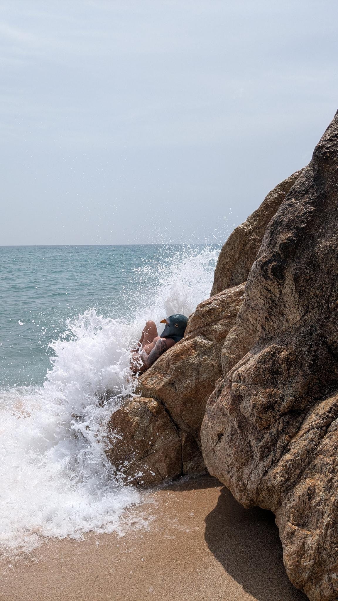Daarmee stortte heel dat kaartenhuis in van mijn eeuwige overdenken. Een goede reminder aan mezelf dus. De uren erna heb ik niet echt nagedacht en als een kind zo blij in de golven en de rotsen gespeeld. Het leven is zoveel makkelijker als je alleen doet wat je leuk vindt. Dat betekent niet drugs doen op het strand of jezelf klemzuipen ieder weekend, maar plezier vinden in hetgeen wat je op dat moment aan het doen bent. Of dat nou je voeten ingraven is op het strand, of een kwartier in de wacht staan aan de teledoon voor een gesprek van 1 minuut. RIP telefoonrekening tho.