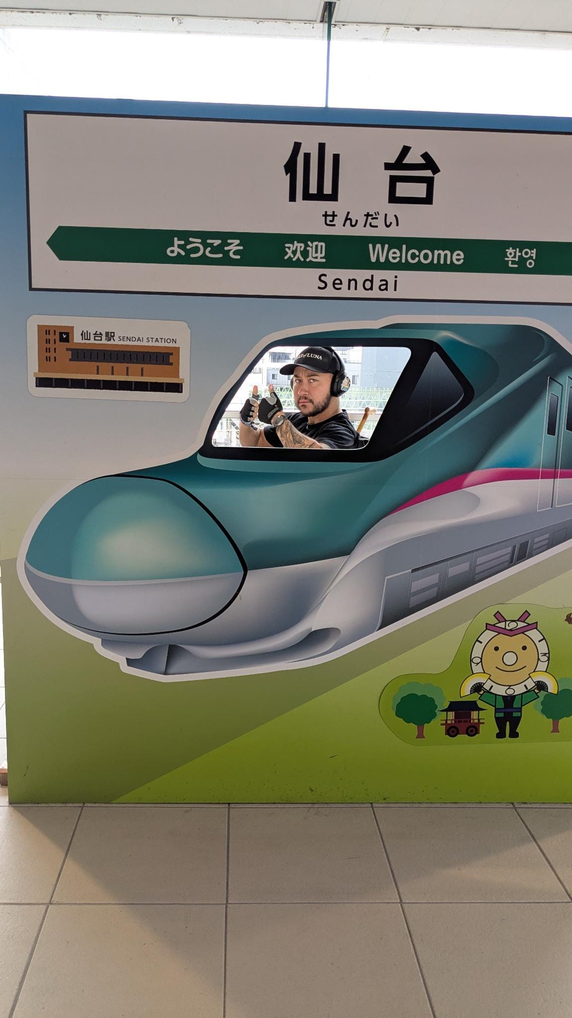 De treinreis tussen deze twee plaatsen bedroeg zo'n 6 uur, waarin we zo'n 900 km aflegden en gedurende die rit een hoop meer te zien kregen dan het oerhollandse landschap dan we gewend zijn. Bossen, bergen, een heleboel honkbalvelden, slaperige dorpjes en miljoenensteden en als letterlijk hoogtepunt Mount Fuji - wat een apparaat is dat zeg. Ook zijn de treinen een stuk comfortabeler dan die van de NS, en een stuk sneller: zo'n 280 km per uur. Dit maakte dat we eigenlijk vrij ontspannen aankwamen op onze bestemming, waar het dus ontzettend hard regende. Ook in onze harten, want het baasje van Aka, de kat in Ishinomaki, berichtte ons dat ze luid miauwend op zoek was naar ons. Ik neem direct de trein terug voor jou, Aka, maar dat mag niet van Geert :(