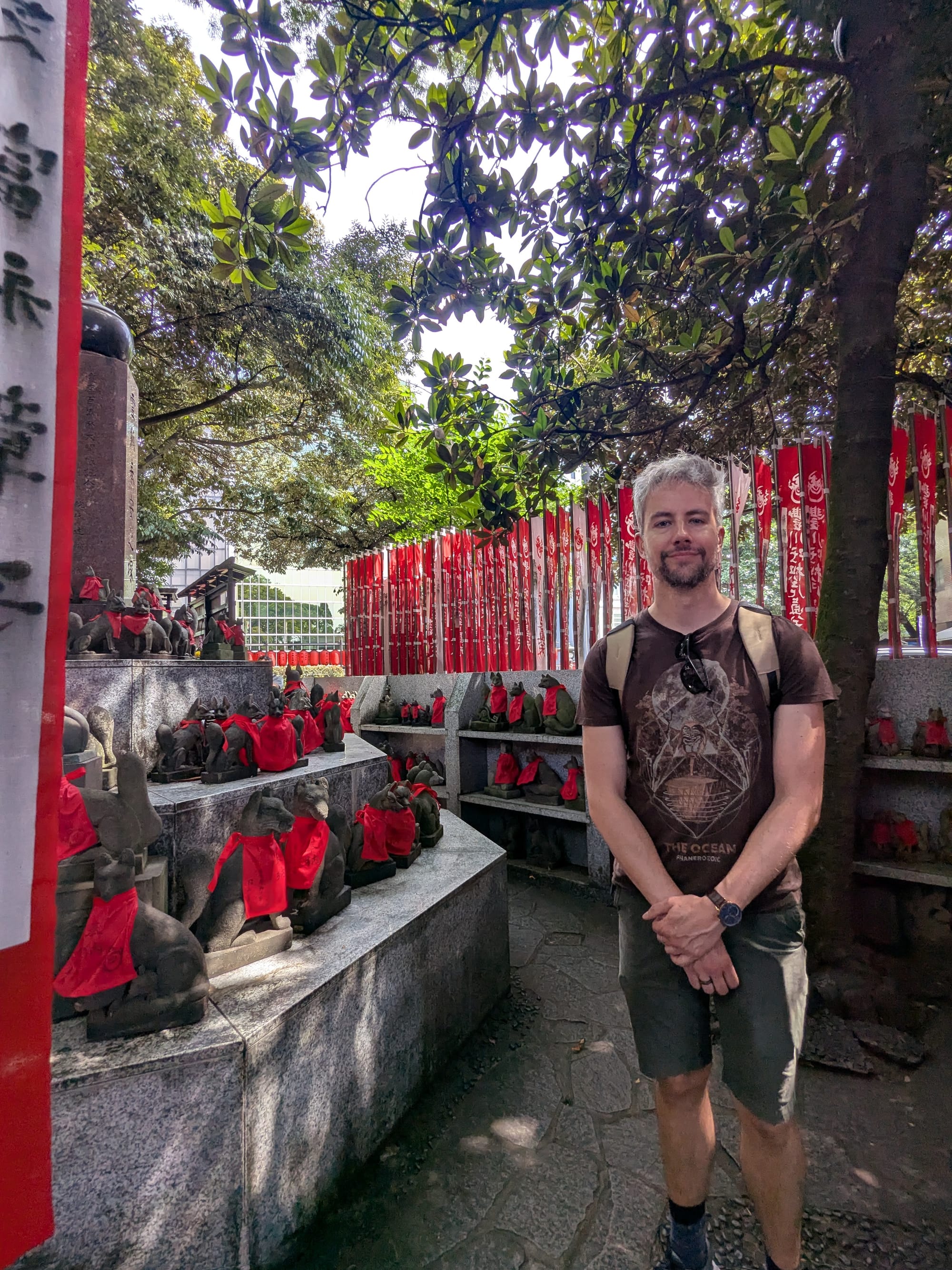 Op die planning stond de Toyokawara Inari Shrine als eerst, een boeddhistisch tempelcomplex met veel vossenbeelden. Ondanks dat dit tempelcomplex hoort bij de Soto-school van het Zenboeddhisme, had het veel Shinto-elementen en dat was mooi om te zien. Wat nog mooier was, was dat ze begonnen te bidden toen we aankwamen. Heel hypnotiserend om ze zo te horen _chanten_ voor zo'n lange tijd. Zo lang kan ik mijn adem niet inhouden hoor. De grote hoeveelheid vossenbeelden was toch wat mijn hart won. Dit was overigens de eerste tempel in best een tijd voor ons - alleen op de eerste of tweede dag in Osaka hebben we er een bezocht en daarna niet meer. Fijn om daar weer eens te zijn.
