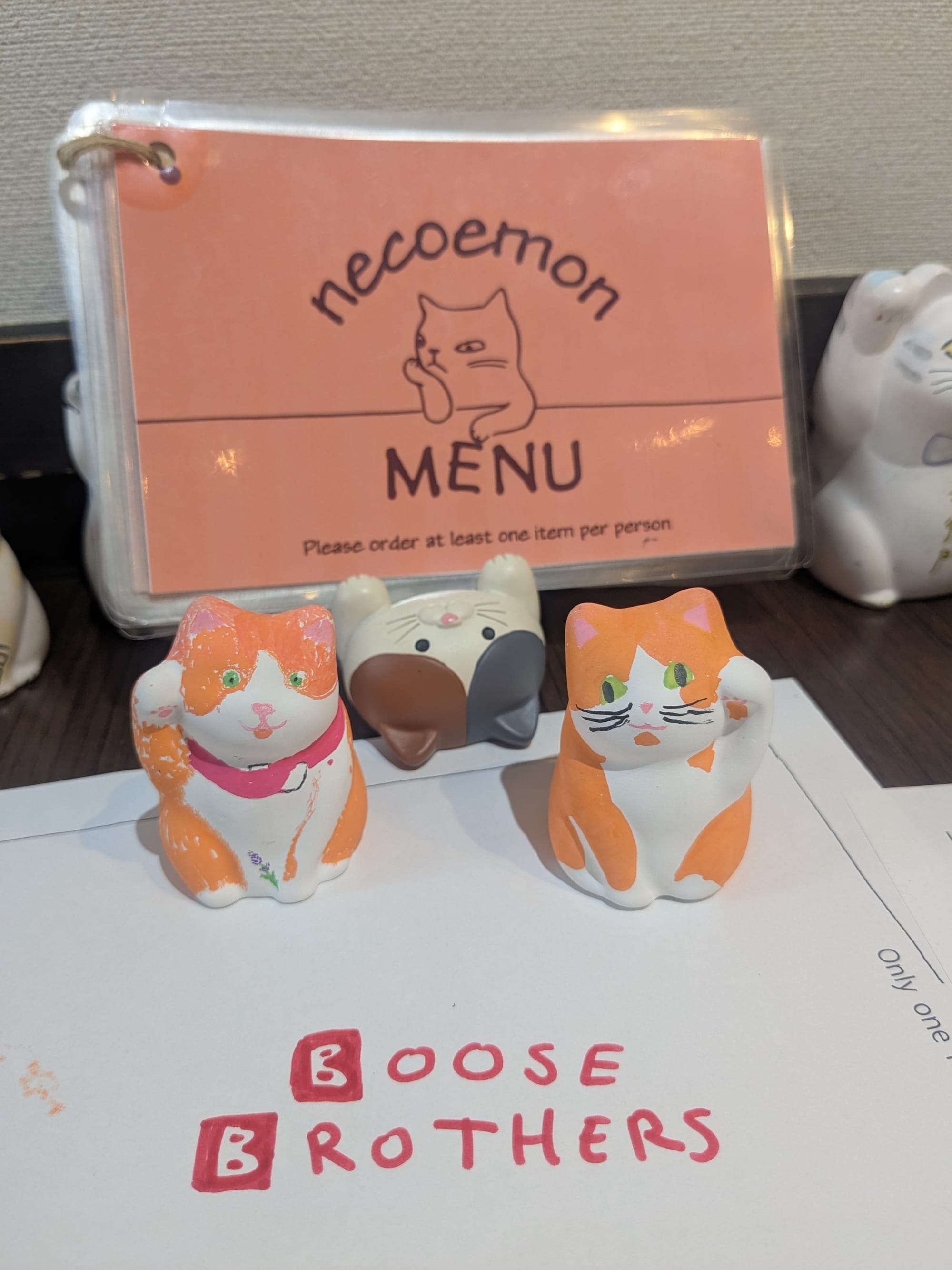 Gelukkig gingen we vandaag iets doen waarbij er niet gepraat hoeft te worden: we gingen onze eigen beckoning cat beschilderen bij Neko-e-mon!