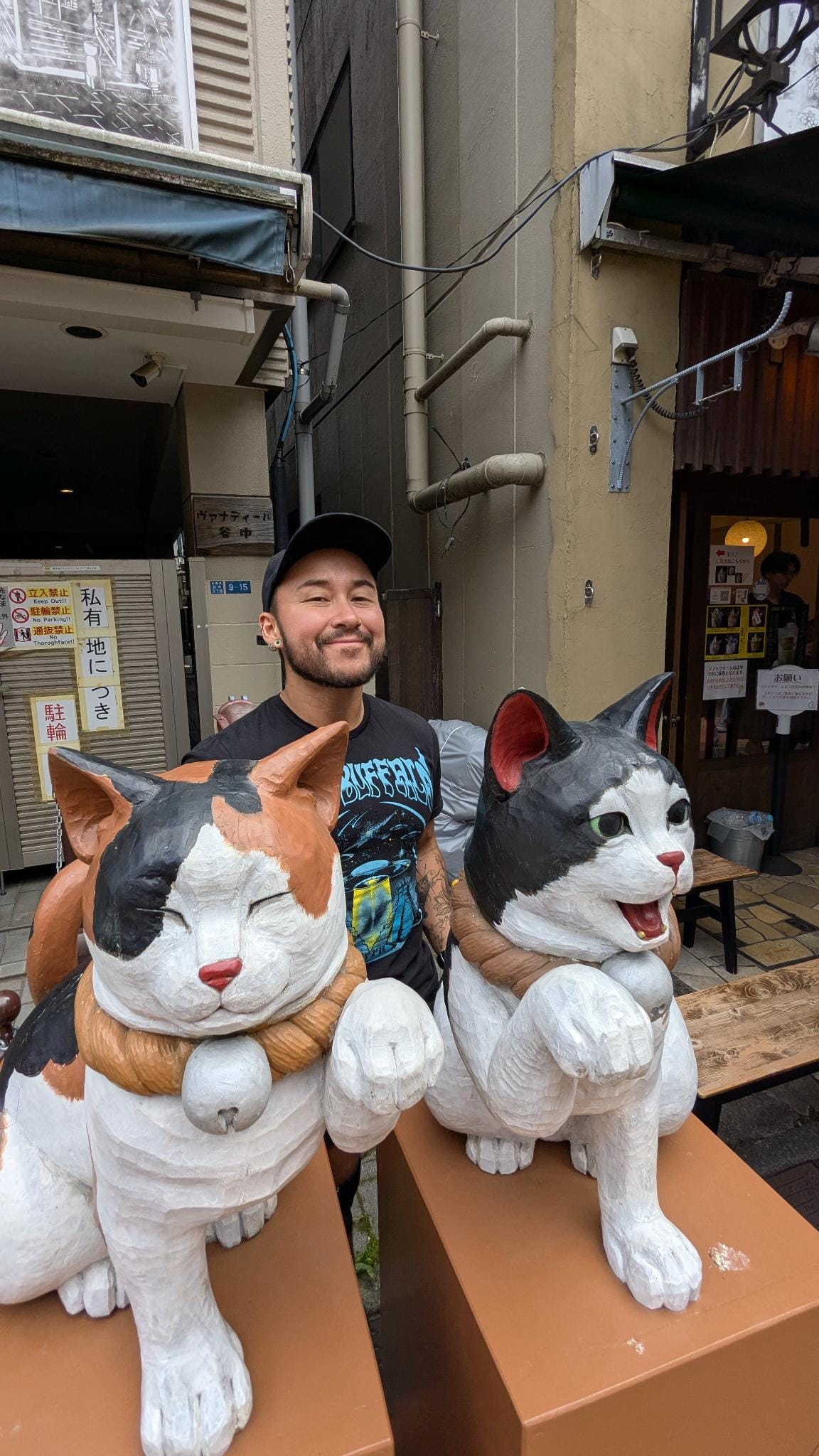 Afleiding was er genoeg: er waren overal kattenbeelden, een gachapon-winkel, een winkel waar ze ijs verkochten dat eruit zag als spaghetti (dat heet hier blijkbaar een Mont Blanc?) en smaakte naar kastanje, en een klein steegje met een heleboel duiven. Ik als kastanjefanboy en duivenheerser kon mijn geluk niet op.