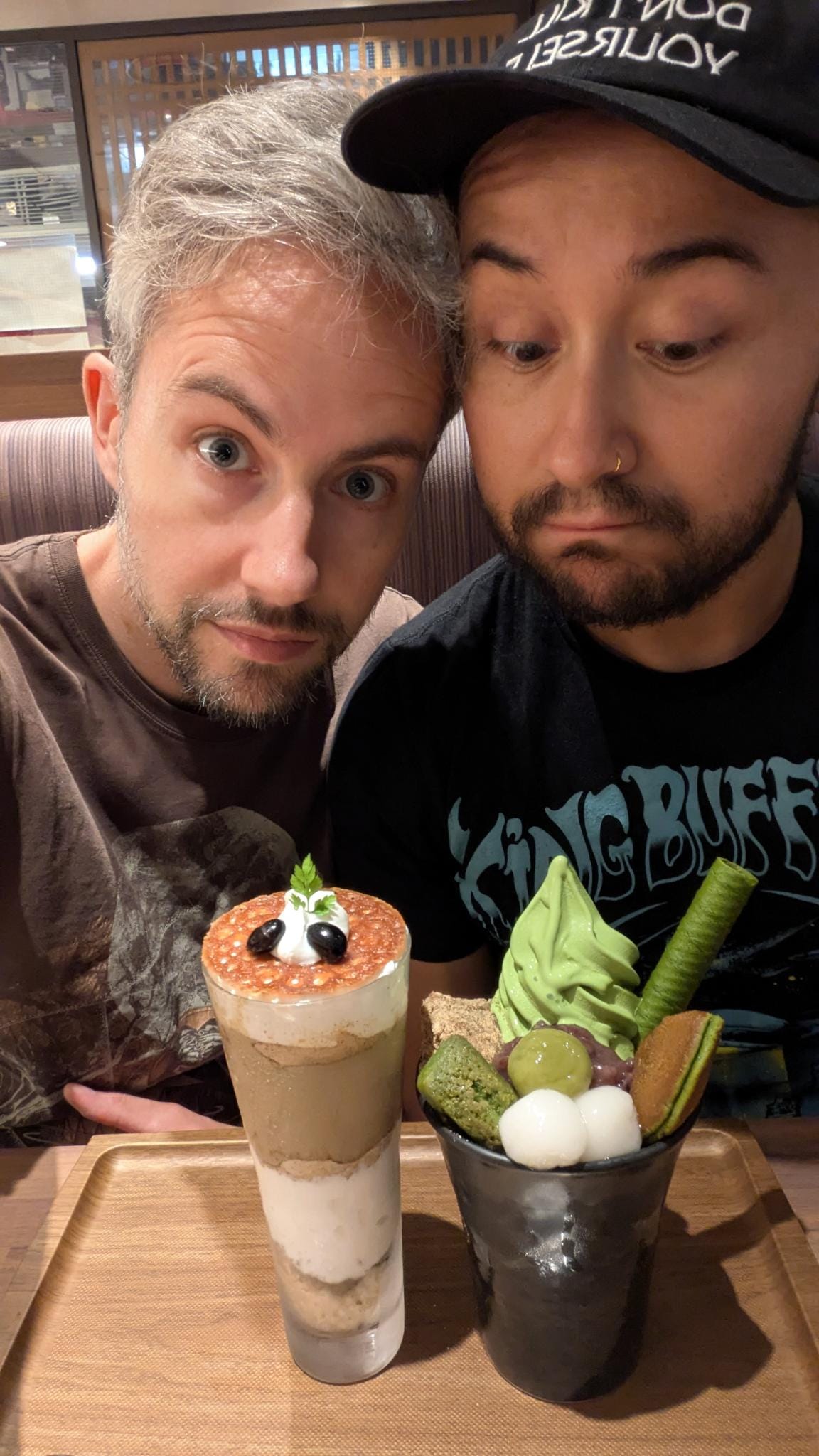 We vonden hem al relatief prijzig, maar al gauw begrepen we waarom: het was ongeveer anderhalve maaltijd per parfait. En dat zeg ik als papzak. Van matcha-ijs tot warabi mochi, gewone mochi, rode bonenpasta, matcha cake... Het enige wat nog miste was matcha om te snuiven van de matcha-spiegel. One can dream.