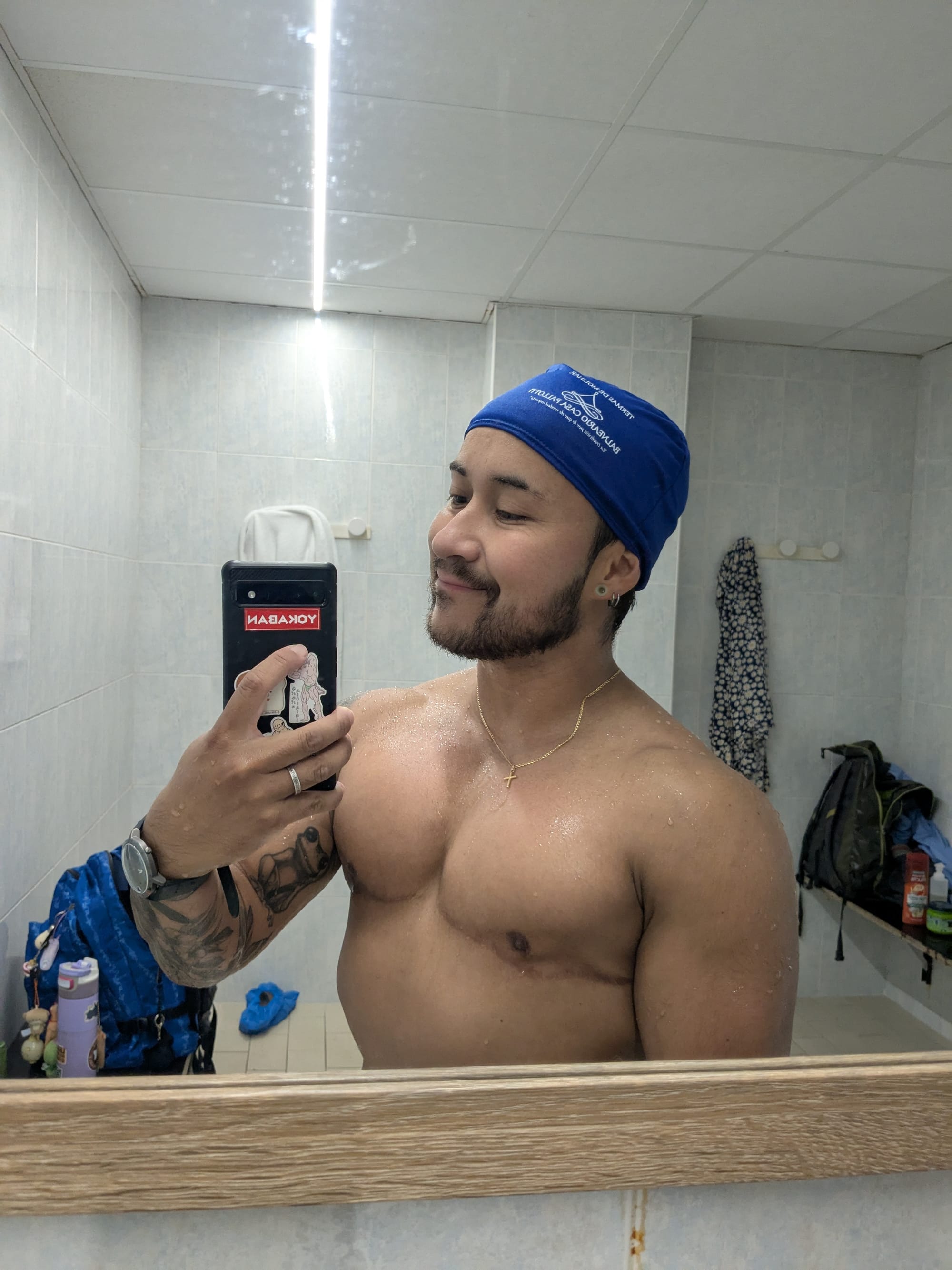 Pootje baden was mij niet genoeg, dus ik ging naar het zwembad dat erbij hoort. Dit is een of ander thermaal bad. Prima. Of ja, niet prima, want er waren mensen aan het zwemmen. 2 mannen. Oei. Als ik maar geen nare blikken of lastige vragen krijg.